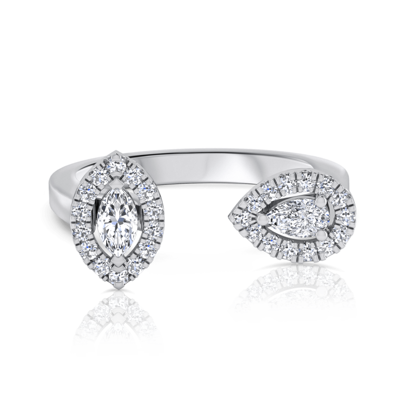 טבעת שתי טיפות יהלומי מעבדה – טבעת מהממת בשיבוץ יהלומי מעבדה בצורת שתי טיפות (אנכית ואופקית) טבעת מרשימה שתתאים לך לכל סטייל! מגיעה במגוון צבעי זהב לבחירה.